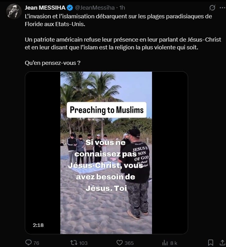 En somme, les discours alarmistes comme ceux de Jean Messiha reposent sur des raccourcis historiques et un « deux poids deux mesures » injustifiable. Refusons ce récit simpliste : il appartient à chacun de réfléchir aux causes réelles de la violence (politiques, économiques, sociales), et de défendre la liberté de culte. Le véritable ennemi n’est ni l’islam ni aucune religion, mais bien les idéologies de haine qui cherchent à dresser les uns contre les autres. Respect, vérité et esprit critique sont les seuls remèdes à ces fausses peurs.